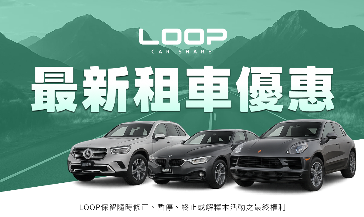 - 優惠內容:公開發文 分享用車體驗(需含真實拍攝照片)並標記 @loopcarshare.tw 與 hashtag #這趟用LOOP,完成任務後私訊小編即可索取 LOOP 租車金最高 $3,300(詳細活動說明請參閱)