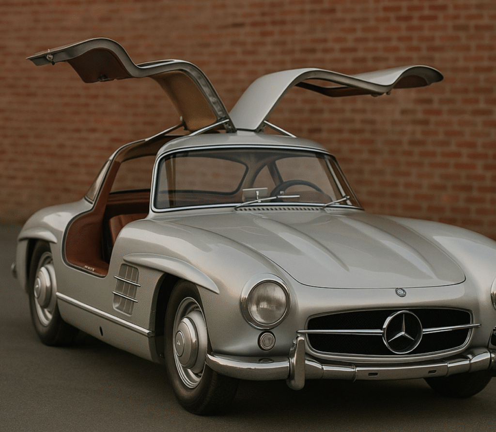 1950 年代早期,Mercedes-Benz 在開發特定車款時,因為車身結構與底盤設計的關係,傳統側開門不是最理想的解法,因此把車門的開啟方式往上移,讓門裝在車頂位置。這個原本偏工程導向的決策,後來卻意外成為汽車史上最經典的設計符號之一。
