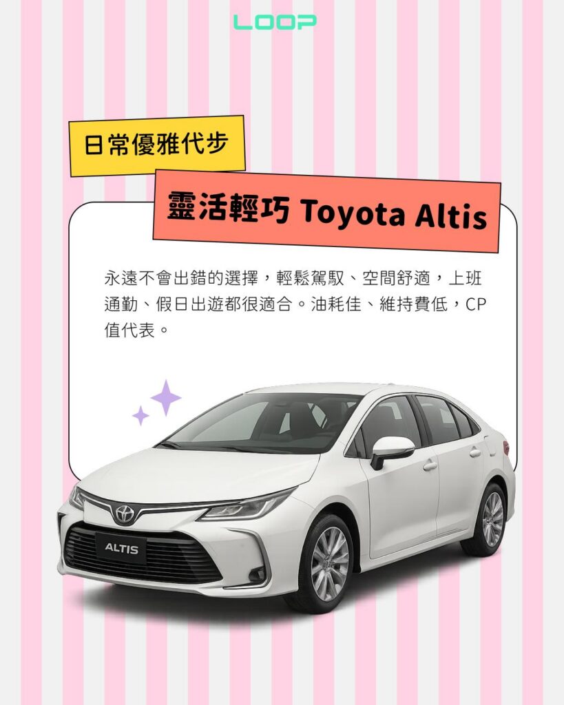 推薦車款:Toyota Altis