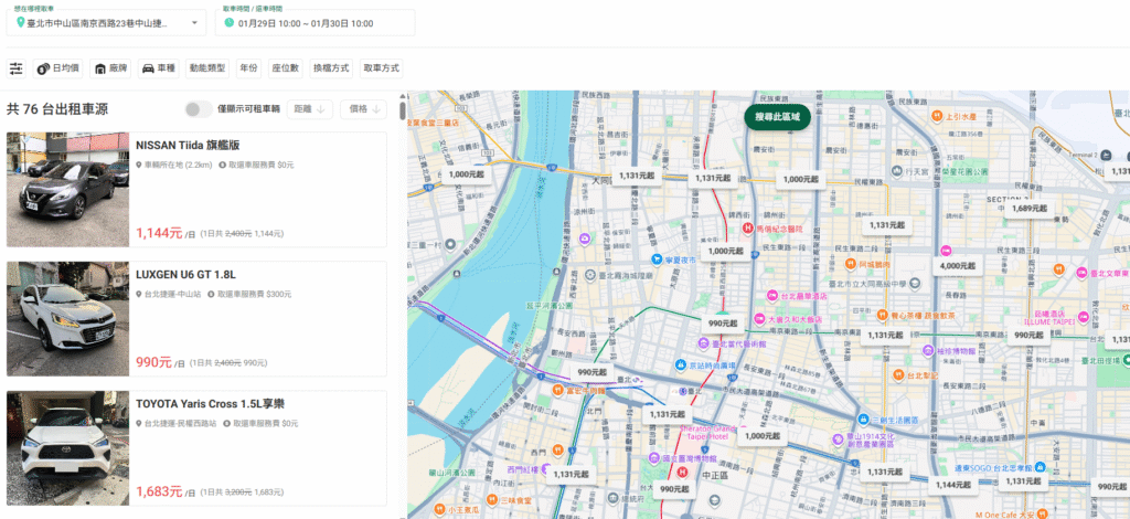 所以你搜尋「中山租車」,通常是因為: